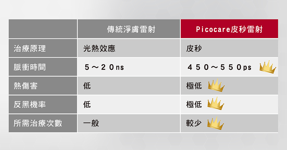 Q:Picocare皮秒雷射與傳統淨膚雷射有什麼分別呢?