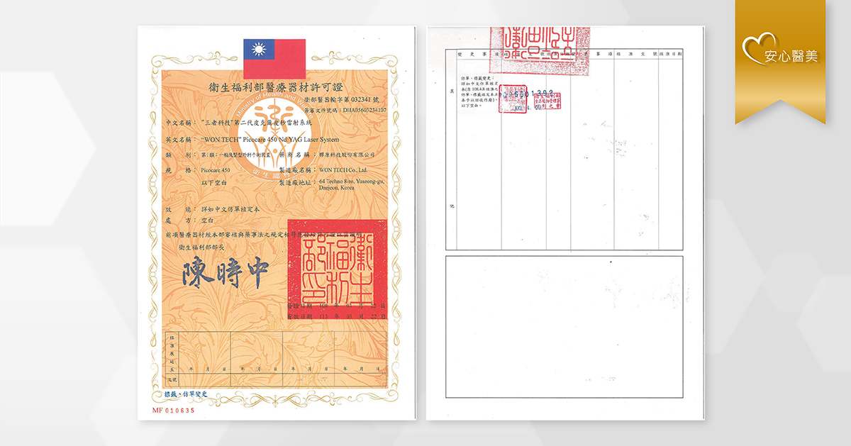 擁有美國FDA、歐盟CE、韓國KFDA及台灣衛福部TFDA等多國國際合法認證,療程更安全。擊發速度是傳統雷射的一千倍,能夠更精準的清除多色刺青、全臉淨膚、治療深淺層斑點,不僅單次治療就能夠有非常顯著的效果,且治療過程也更加舒適。