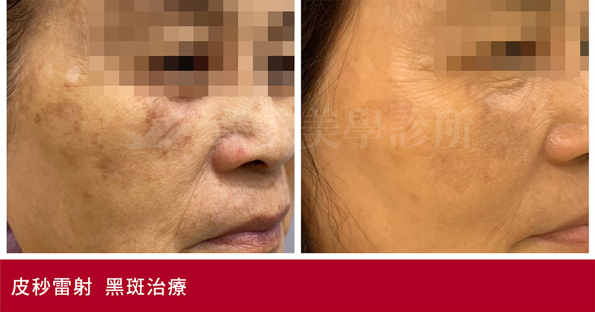 - 淺層斑:雀斑、曬斑、老人斑